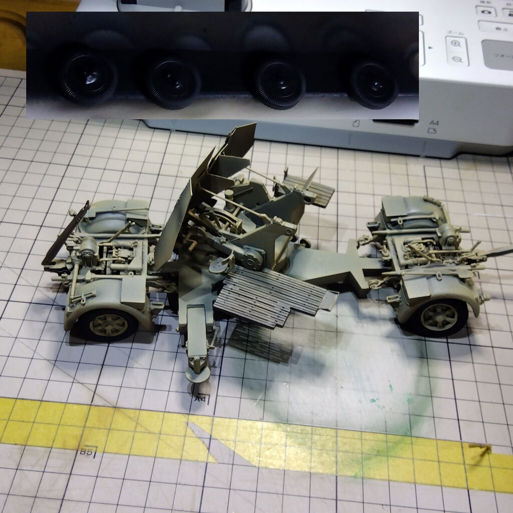 写真左の上部は、ホイール部分をマスキングしたものです。